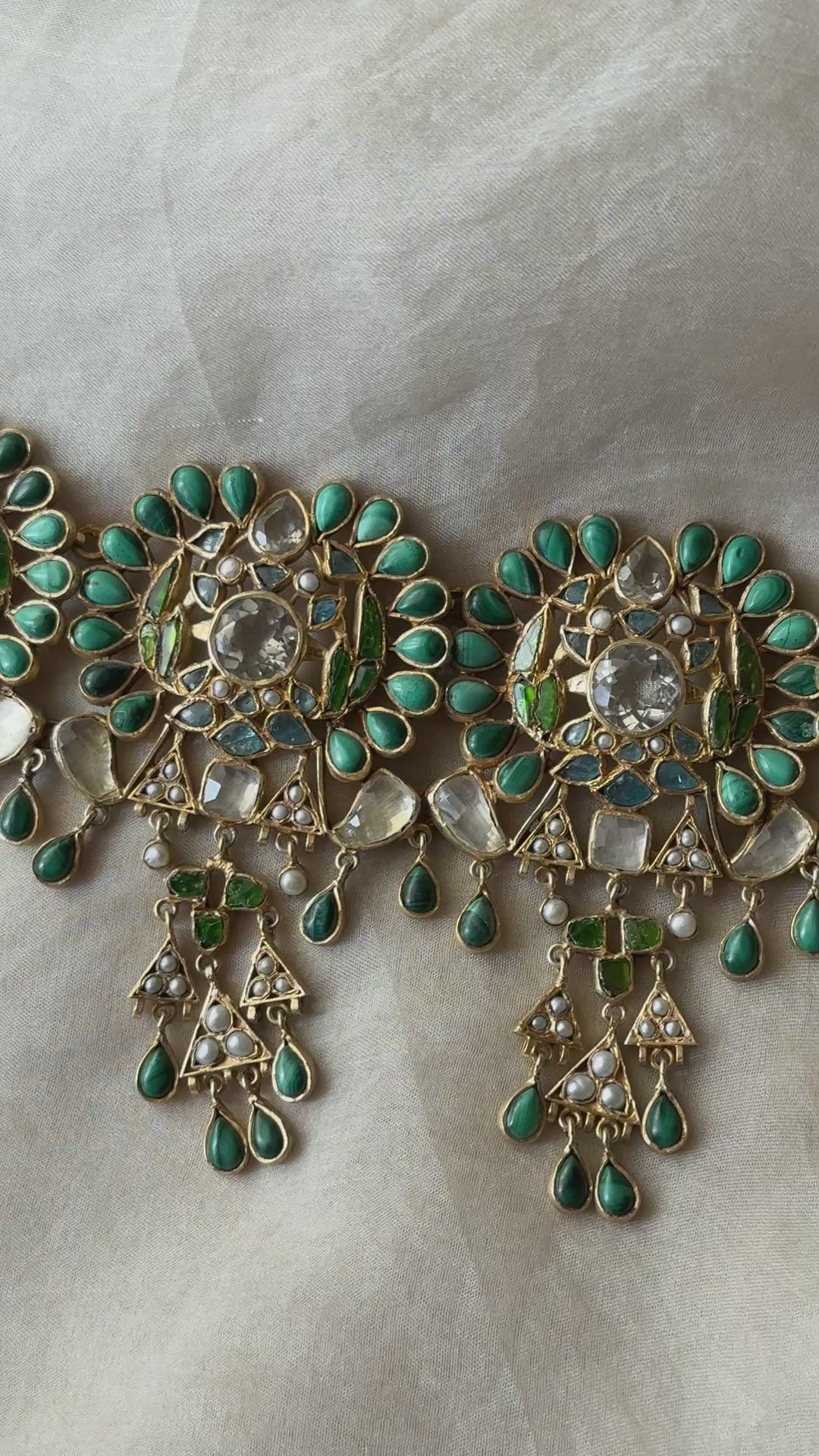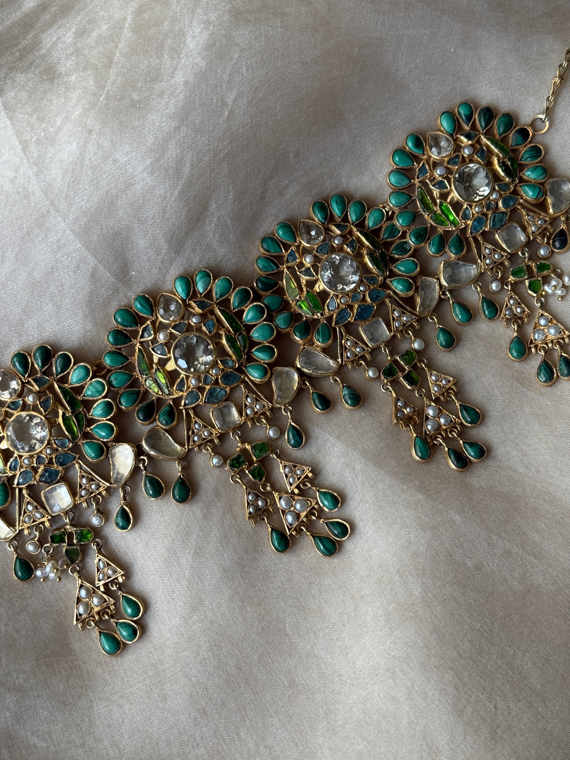 A piece that feels both ancient and incredibly fresh, this choker features rhythmic floral medallions and cascading geometric drops. It is a tribute to the "slow luxury" philosophy—handcrafted with patience and intended to be worn for a lifetime.